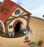 荷物に家をいれ、鎧をドリブルして、ギルド商人の下まで歩いていきましたw