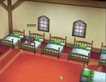 部屋に入ると大量のベッドと犬。あとテーブルとソファ+姉様。