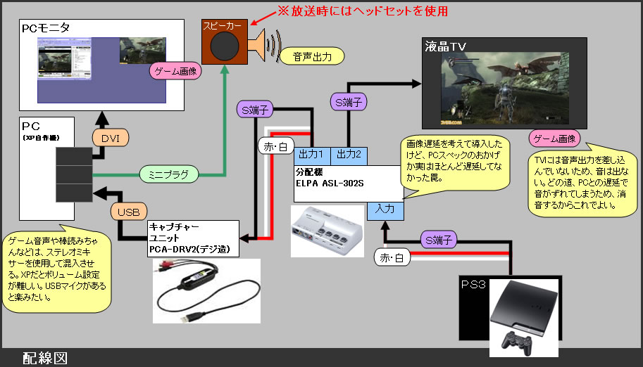 私がニコニコ生放送でPS3のゲーム(デモンズソウル)を配信するまでに、色々接続方法なんかを悩んだ結果を以下にまとめて記してみます。