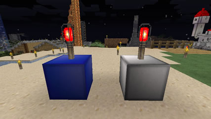 1) ラピスラズリブロックを設置し、その上にレッドストーントーチを立てます。
